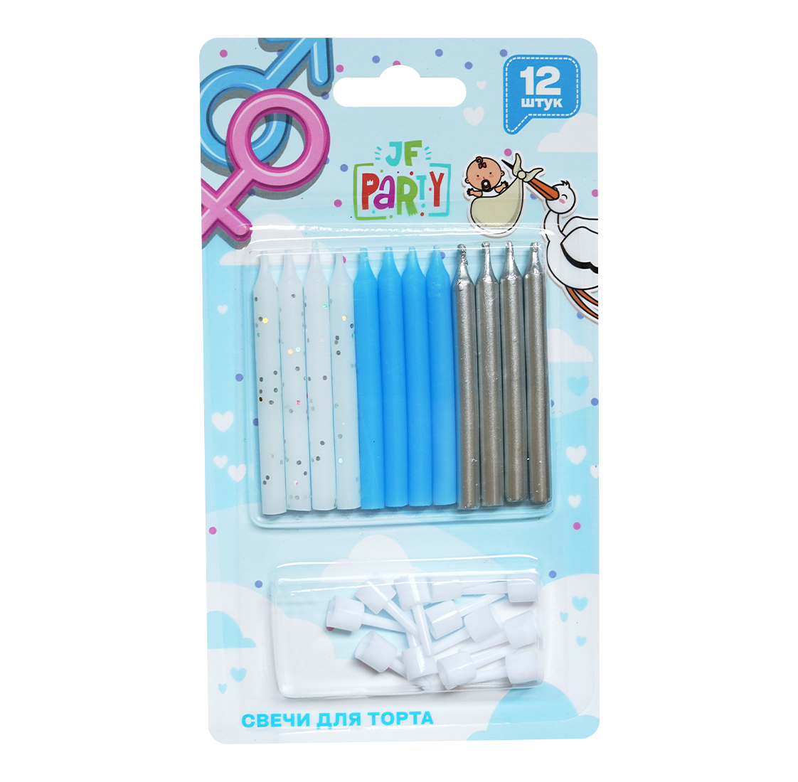 - Эффект: Свечи набор белый, голубой, серебро 6 см